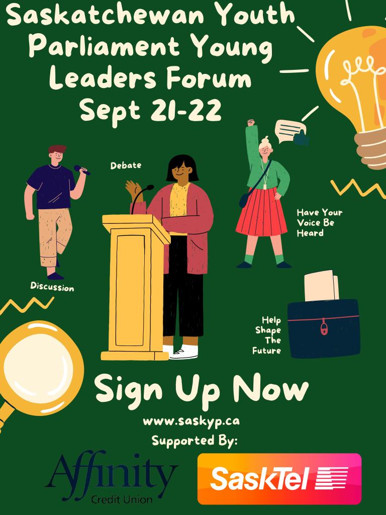 We will be hosting a Youth Leadership Forum in Saskatoon from September 21-22. With both municipal and provincial elections planned to take place this fall, we are wanting to do our part to help get youth in our province active this election season. Helping to inspire youth to vote, but also look at running one day in the future.